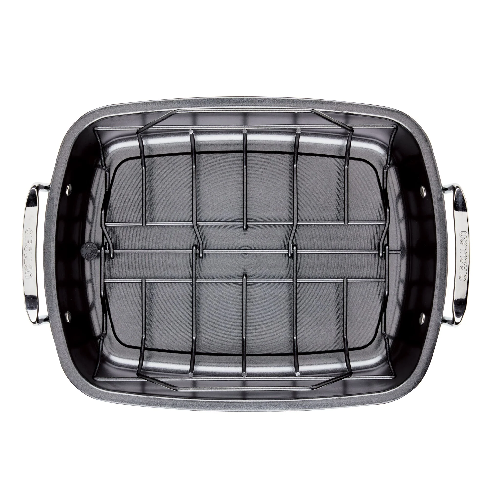 From cook to carve, our patented removable rack lifts foods in the oven for incredibly even cooking and then breaks down with an easy pull of the pin for seamless serving and cleanup. This incredibly durable steel roasting pan is roomy enough for a 24-pound turkey, ham, prime rib, or rack of lamb and is finished with nonstick and extra-strong, double-riveted handles designed to go the distance.